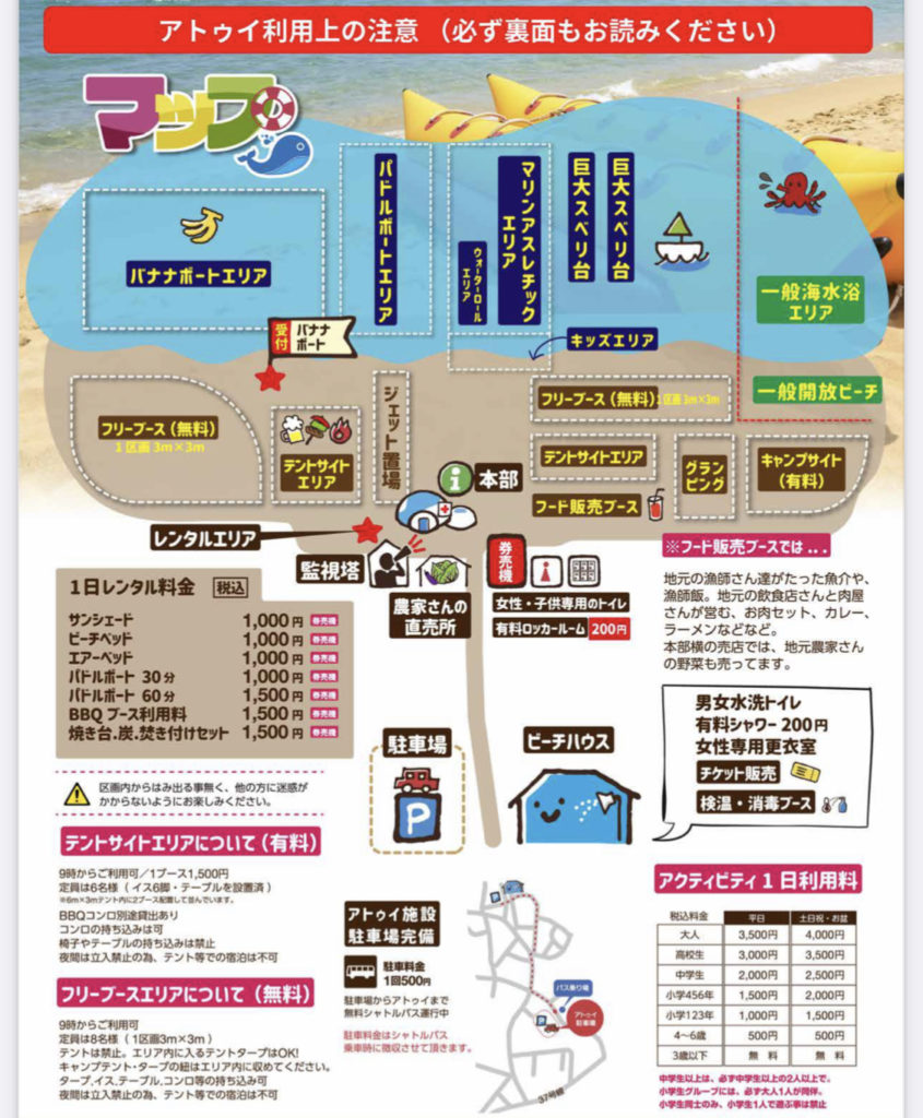 小学3年生以下はバナナボートに乗れないなど、制限があるようです。