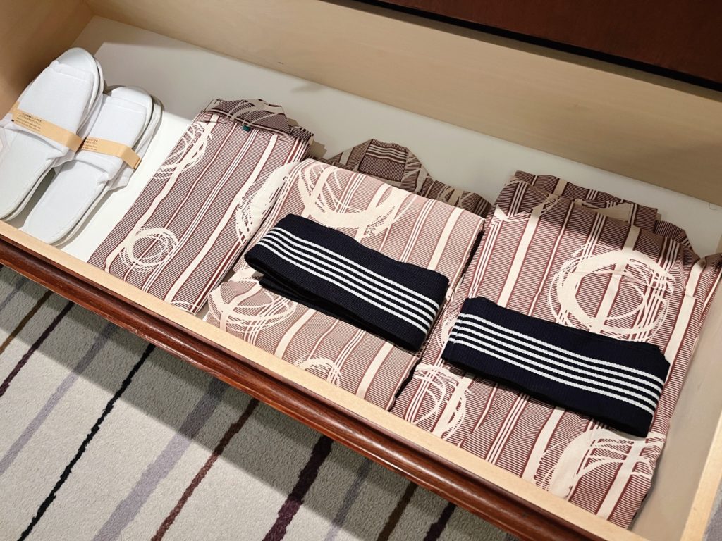 アメニティや浴衣も3人分セットされていました。