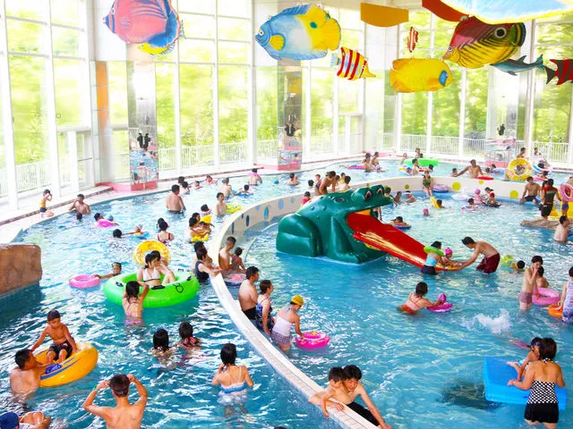 - 多彩なプールエリア: 流水プール、波のプール、ウォータースライダーなど、子供から大人まで楽しめる多様な設備。屋内なので天候に左右されず通年利用可能。