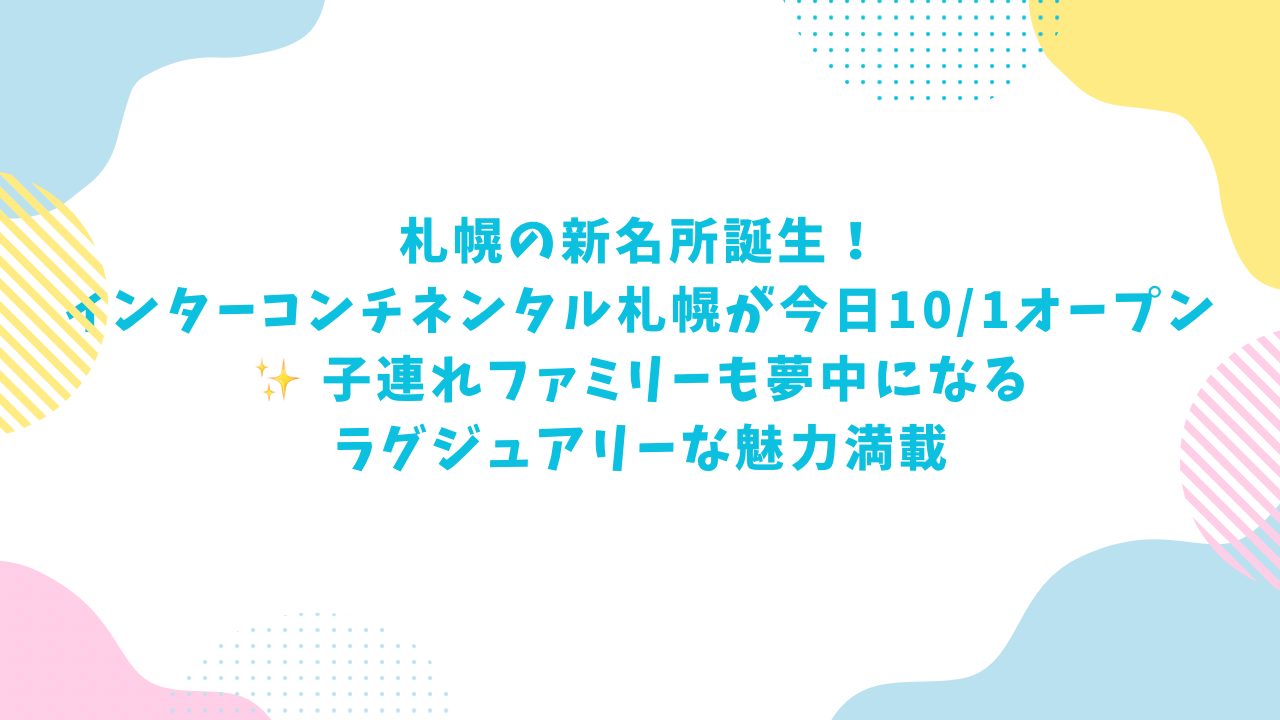 🌟 今日のオープンで街が沸騰! 札幌の新しいシンボル・インターコンチネンタル札幌ホテル