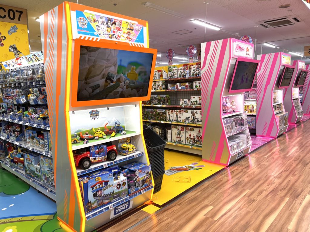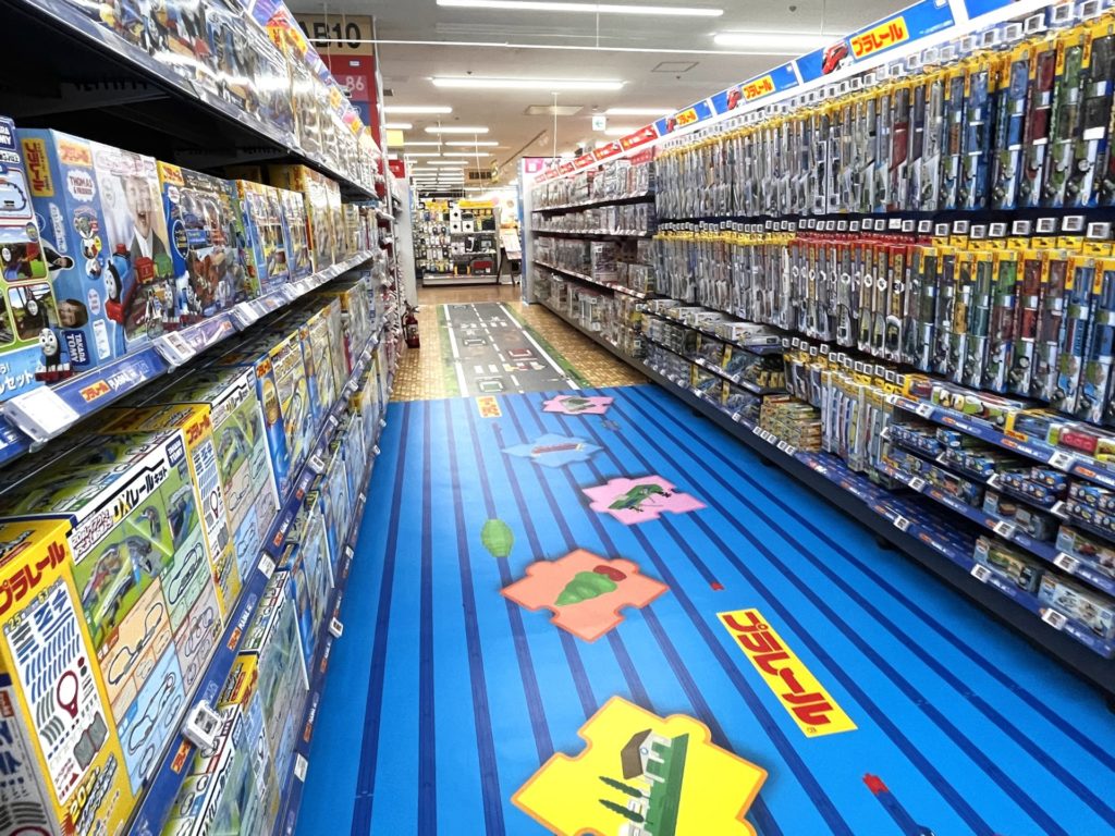 おもちゃコーナーも一新され、通路ごとにコーナーを模した床になっていて分かりやすいです。