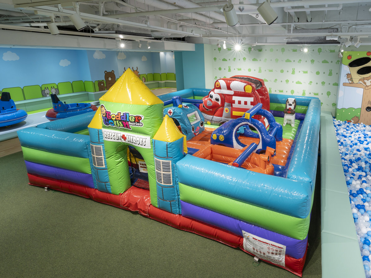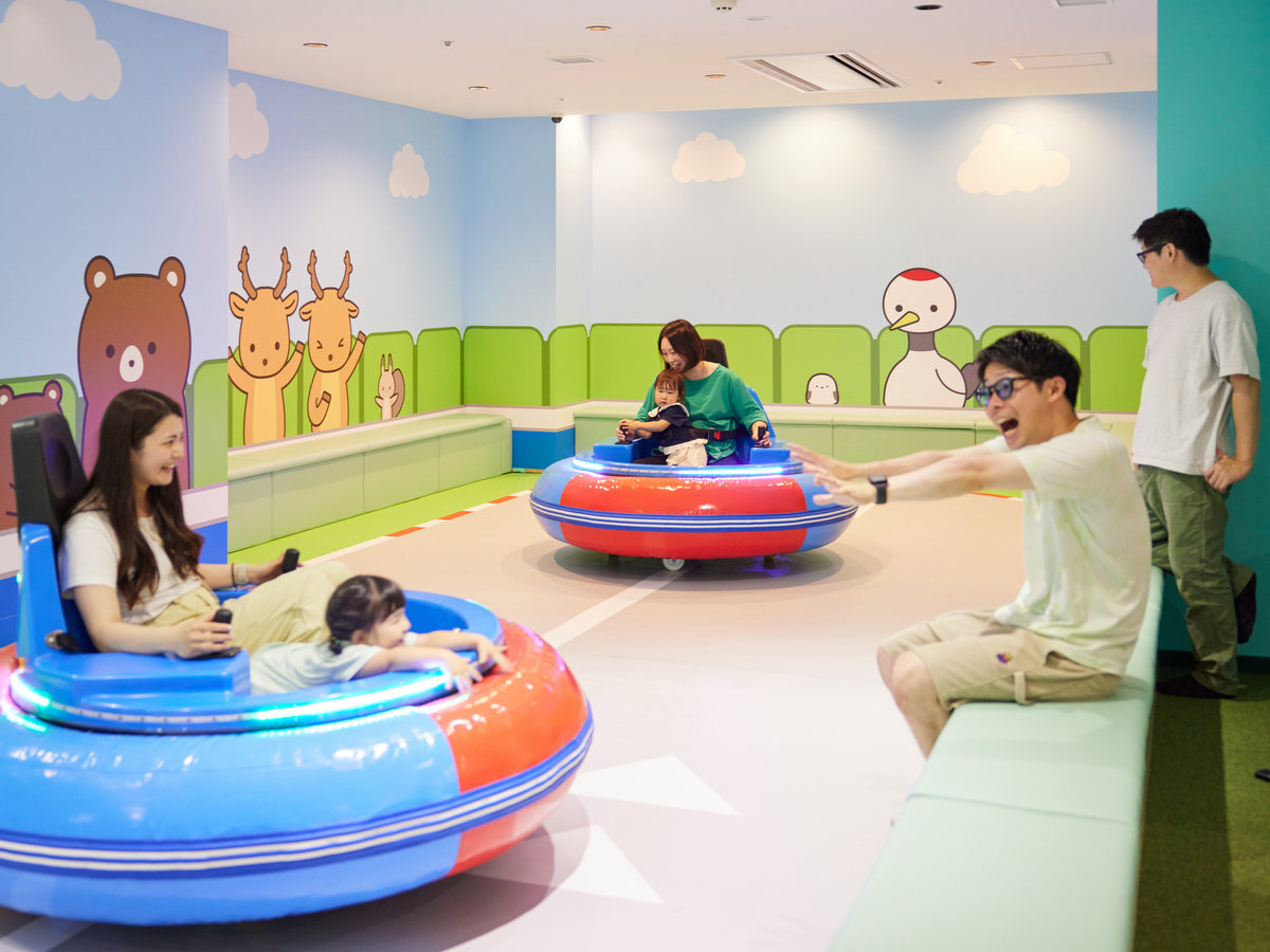 新たに登場した屋内トランポリンやふわふわ滑り台、親子で楽しめるくるくるカートは、子どもたちのテンションをMAXに。